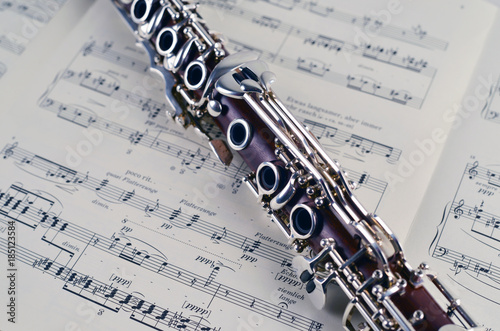 Fototapeta premium klasyczny instrument muzyczny klarnetowy w nutach