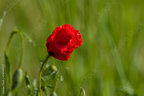 Obraz premium Klatschmohnblüte mit grünem Bokeh