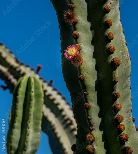 Naklejka premium kleine Blüten an Sukkulenten, Jardin de Cactus, Cesar Manrique, Lanzarote,...