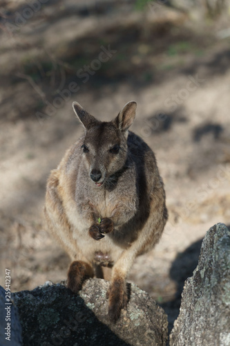 Fototapeta premium Kleine Kängurus (Wallabys) im Granite Gorge Nature Park in Queensland Australien