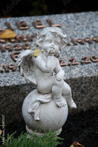 Fototapeta premium kleine nette engelsfigur sitzt auf einem grab