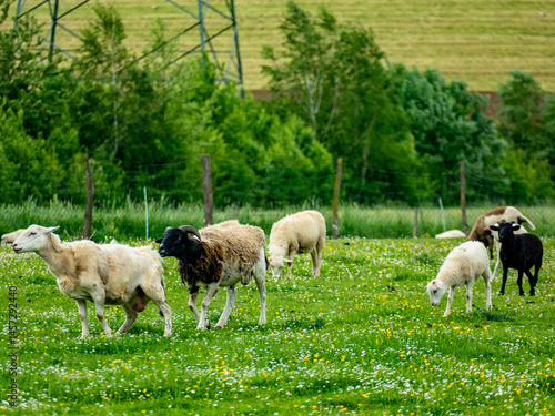 © focus finder, Obraz premium Kleine Schafherde auf der Weide im Frühjahr
