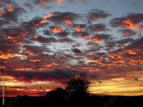 © linlia, Fototapeta premium kleine Wölkchen am Abendhimmel nach Sonnenuntergang