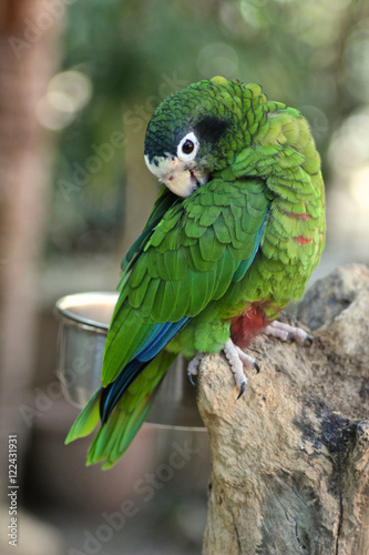 © isel69, Obraz premium Kleiner grüner Papagei putzt sich