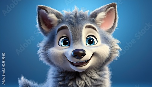Obraz premium Kleiner niedlicher Wolf, blauer Hintergrund
