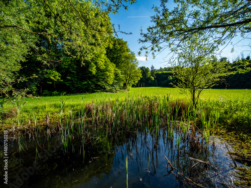 © focus finder, Fototapeta premium Kleiner Teich auf einer Waldlichtung