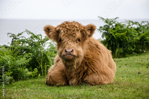 Fototapeta premium kleines Higlandcattle am Straßenrand