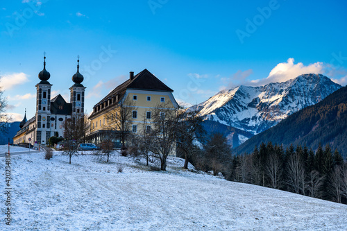 Fototapeta premium Kloster, Winter, Berg, Schnee