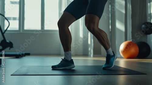 Fototapeta premium Knee exercises in a serene fitness room. Featuring strength and recovery