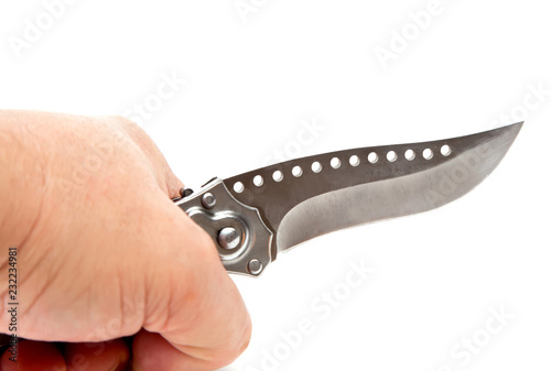 Obraz premium Knife in hand on a white background
