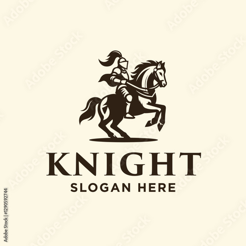 Fototapeta premium Knight Riding Horse Stallion Warrior Fighter Logo Design