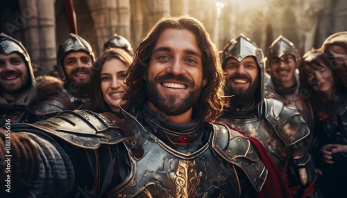 © Luis Eduardo, Obraz premium Knight Selfie in Stone Pillar Lighting