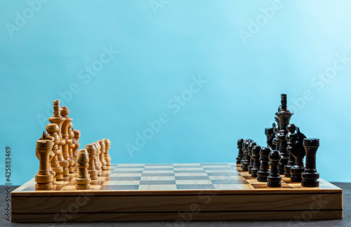 Fototapeta premium Knights on a chessboard. Business, strategy