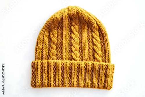 © A to Z, Fototapeta premium knitted dark yellow hat isolated on white background.