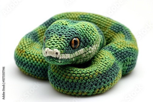 © Alina, Fototapeta premium Knitted green christmas snake toy. New Year 2025