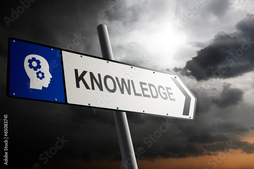 © Zerophoto, Obraz premium Knowledge direction. Blue traffic sign.