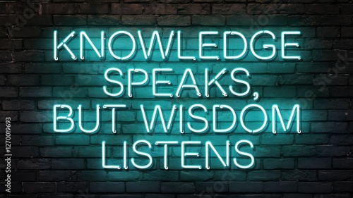 © Media Srock, Fototapeta premium Knowledge speaks but wisdom listens glows with neon light