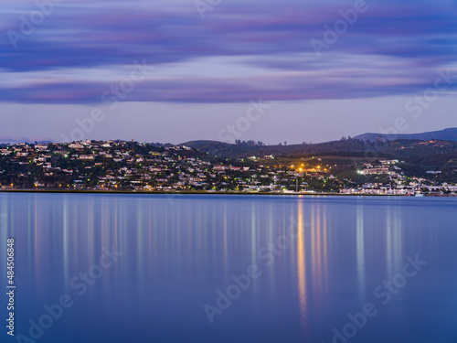 Fototapeta premium Knysna town lights reflection on the lagoon after sunset in South Africa