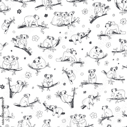 © GooseFrol, Naklejka premium Koala animal with branches vector seamless pattern