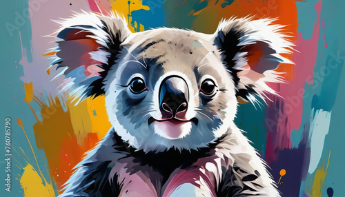 Obraz premium Koala bear on a colorful splattering background. Artistic rendition....