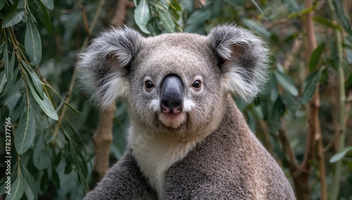Fototapeta premium Koala bear resting in a tree, observing its natural habitat, wildlife preservation