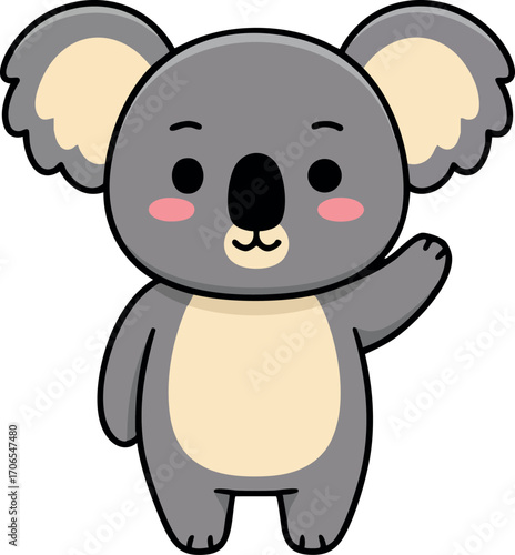 Fototapeta premium Koala cartoon character waving hand cute gray marsupial animal vector illustration friendly design
