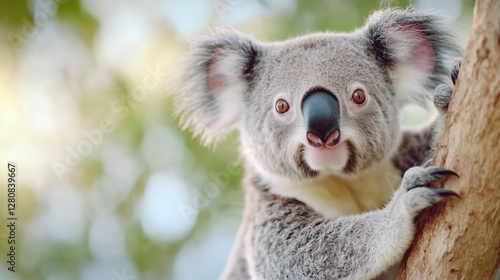 © Maryna, Obraz premium Koala climbing a tree in a natural habitat during daylight hours in Australia