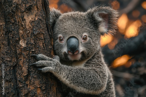 © frank29052515, Obraz premium Koala Clinging to Tree in a Natural Habitat