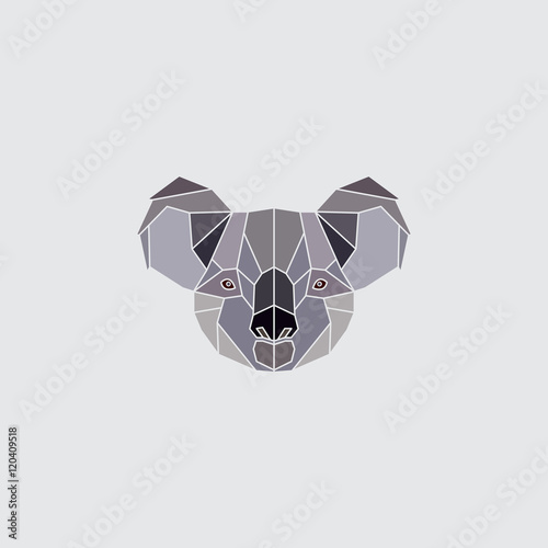 © greens87, Fototapeta premium Koala colored head. Geometric logo polygonal silhouette isolated on grey background. Design element illustration.