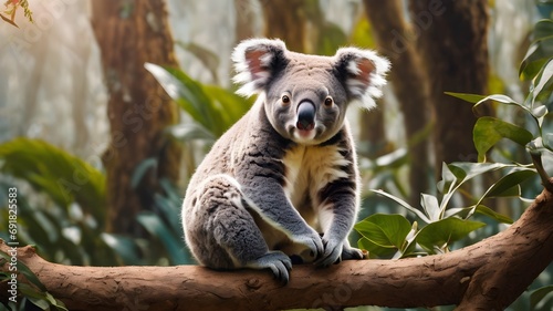 Fototapeta premium koala cub running , portrait of koala in the flower , wild jungle
