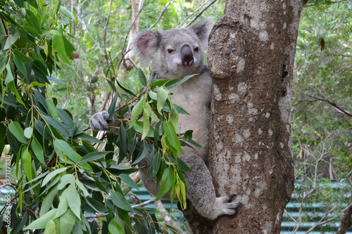 © Diana, Fototapeta premium Koala holding leaves in tree