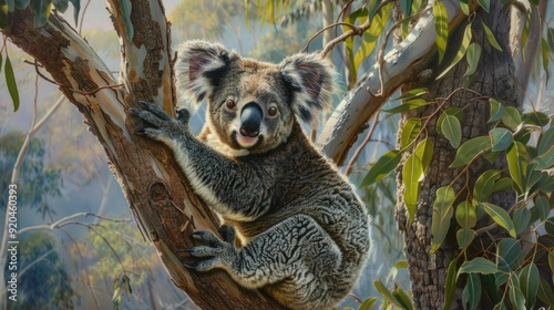 © Umi Sakina, Obraz premium Koala in a Eucalyptus Tree