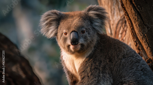 Fototapeta premium Koala Looking Alert Golden Hour Clean Background