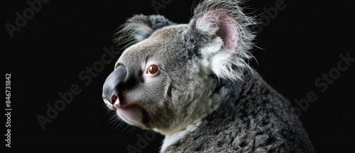 Obraz premium koala looks away against the black backdrop, its silhouette blending into the...