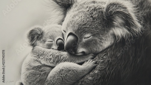 Fototapeta premium Koala mom affectionately embraces her sleeping baby with love