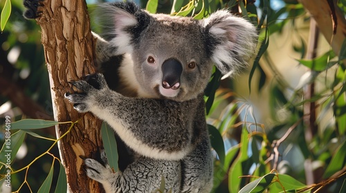 Obraz premium Koala on eucalyptus tree outdoor.