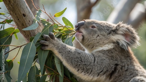 © Phongpak123, Fototapeta premium Koala perched on a tree