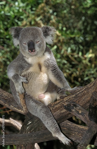 © slowmotiongli, Naklejka premium Koala, phascolarctos cinereus, Male sitting on Branch, Australia