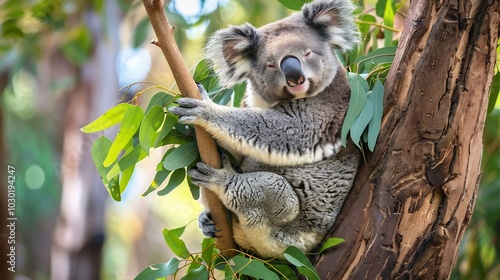 Obraz premium Koala Resting on a Eucalyptus Tree Branch