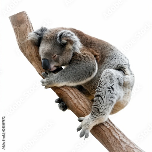 Naklejka premium Koala resting on a tree branch in nature.