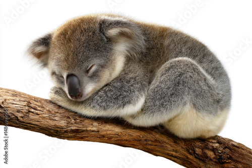 Obraz premium Koala resting peacefully on a branch during a sunny afternoon in its natural...