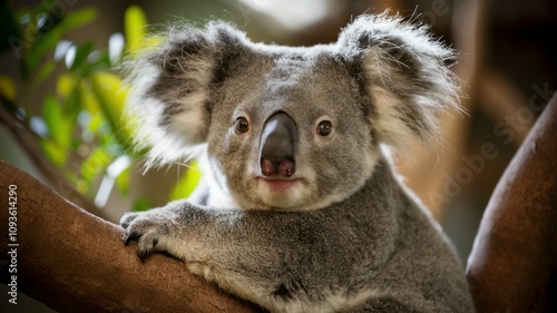 Obraz premium Koala's Gaze: A close-up shot of a charming koala bear perched in a tree,...