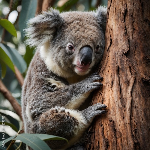 © Saeed Ahmad, Naklejka premium Koala Sleeping in an Eucalyptus Tree. koala in tree.