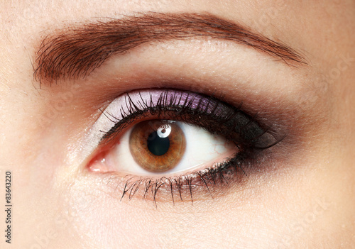 © skumer, Fototapeta premium Kobiece oko z długimi rzęsami z bliska obrazu.