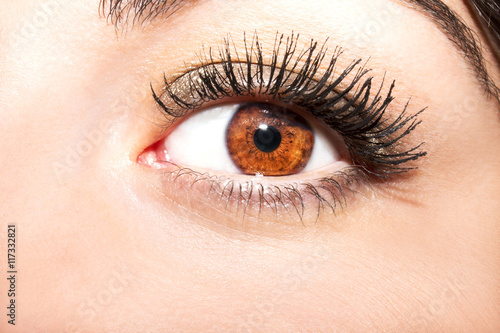 Obraz premium Kobieta brązowe oko z niezwykle długimi rzęsami