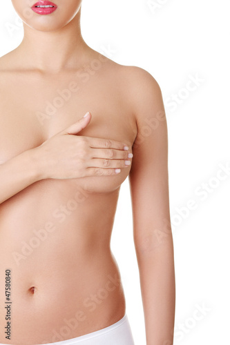 © Piotr Marcinski, Fototapeta premium Kobieta trzyma ją za pierś