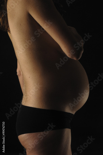 © Curto, Fototapeta premium kobieta w ciąży z czarnym tłem