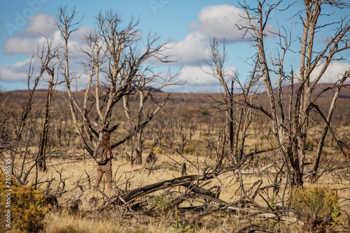 © Maygutyak, Fototapeta premium Kobieta w lesie martwych drzew