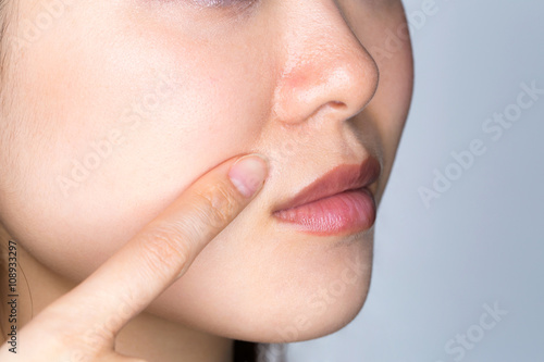 Obraz premium Kobieta wskazująca na linię zagięcia