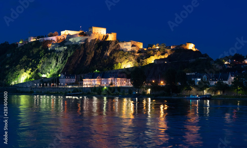 © Comofoto, Fototapeta premium Koblenz Ehrenbreitstein mit Festung am Rhein, Abendstimmung